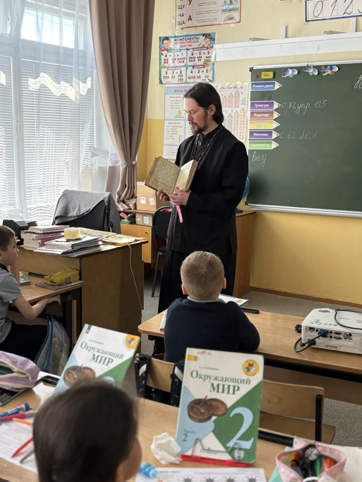 19 марта во 2,3 классах прошло внеурочное занятие по ОПК, которое провёл батюшка сельского храма им св. Косьмы и Домиана. Отец Дмитрий провёл с ребятами беседу о древних православных книгах, показывал иллюстрации.День православной книги 14 марта празднуют не только в России, но и в других странах, например в Белоруссии, Казахстане, Молдавии, Литве, Латвии и Эстонии. Праздник приурочен к памятной дате: 14 марта (1 марта по старому стилю) 1564 года на Руси вышла первая печатная книга "Апостол", изданная русским первопечатником и диаконом Иваном Федоровым в Москве на печатном дворе. Эта богослужебная книга и поныне используется в любом православном храме. Дата стала отправной точкой начала официального книгопечатания в России.